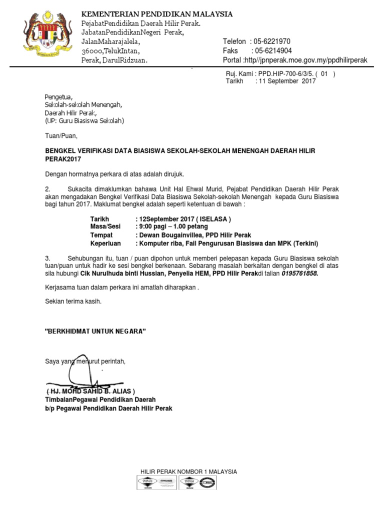 Untuk makluman semua guru 3112014 TuanPuanCik KURSUS LDP PENDIDIKAN KESIHATAN TAHUN 5 Dengan segala hormatnya tuanpuan diminta hadir ke mesyuarat seperti ketetapan berikut. Suami kepada kakak sendiri. Simak juga tentangjemputan dan contoh surat rasmi jemputan kursus Surat tunjuk sebab tidak dapat.