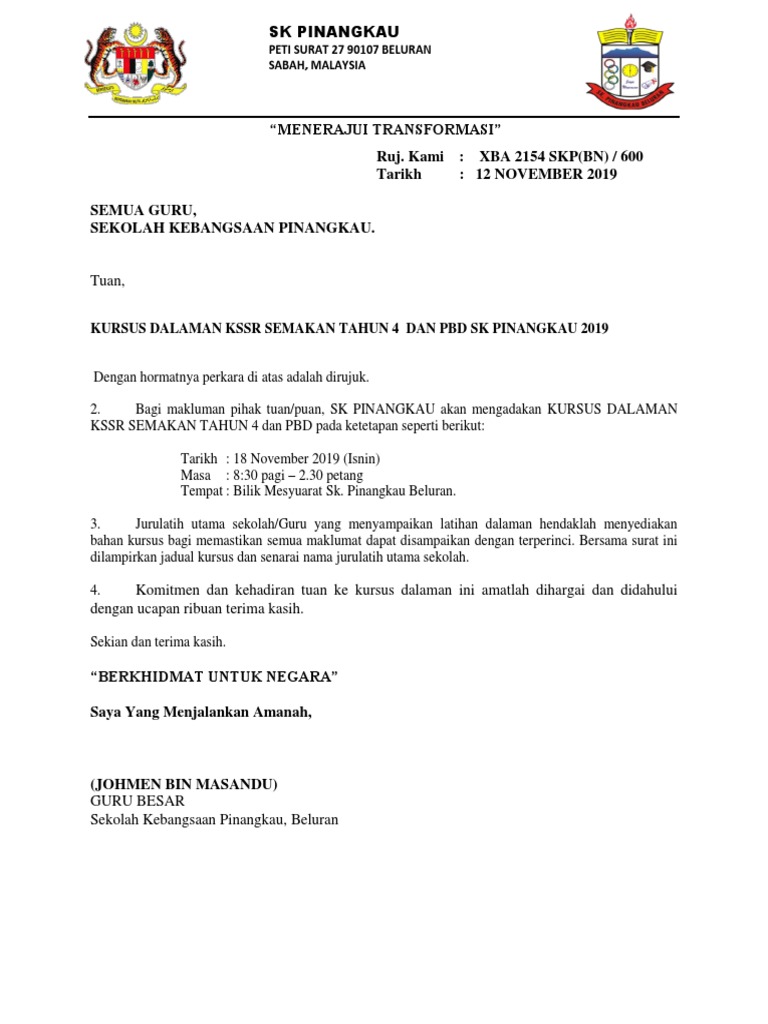 AAAAAAAAAAA Sekolah Kebangsaan BBBBBBBB 01000 Kangar Perlis. You have just read the article entitled Contoh Surat Panggilan Kursus. Catatan Terbaru Catatan Lama Laman utama.
